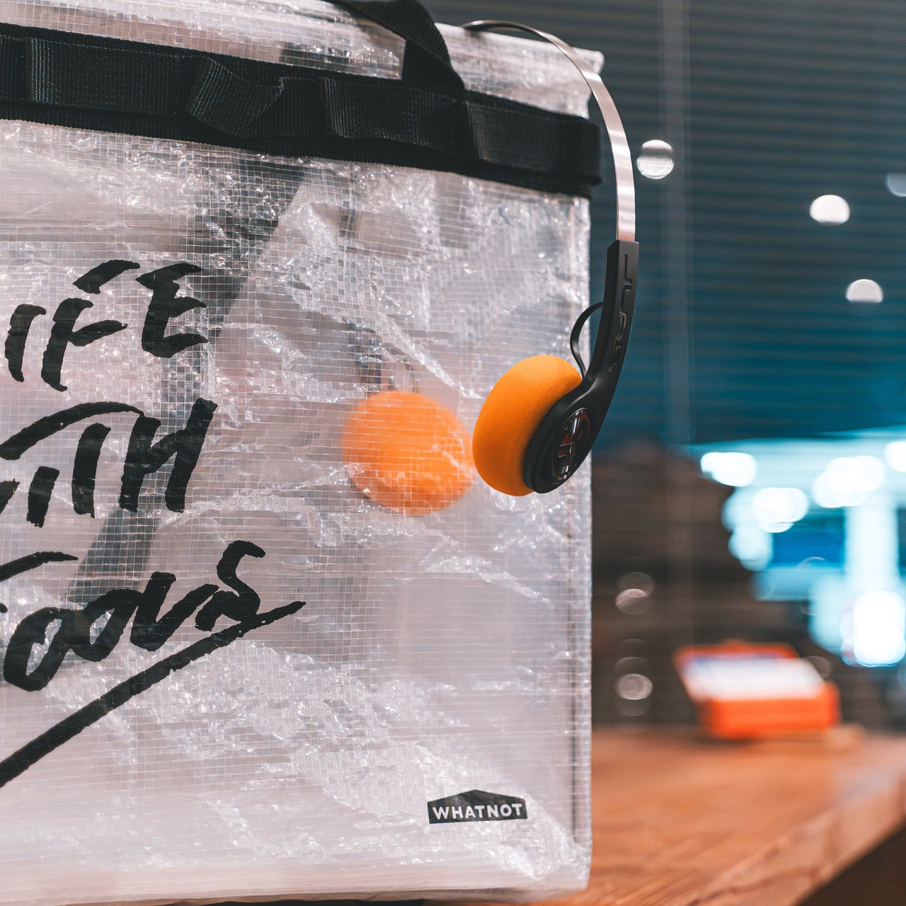 付属の2色のイヤークッション(オレンジ、ブラック)で自分好みにきせかえ可能。