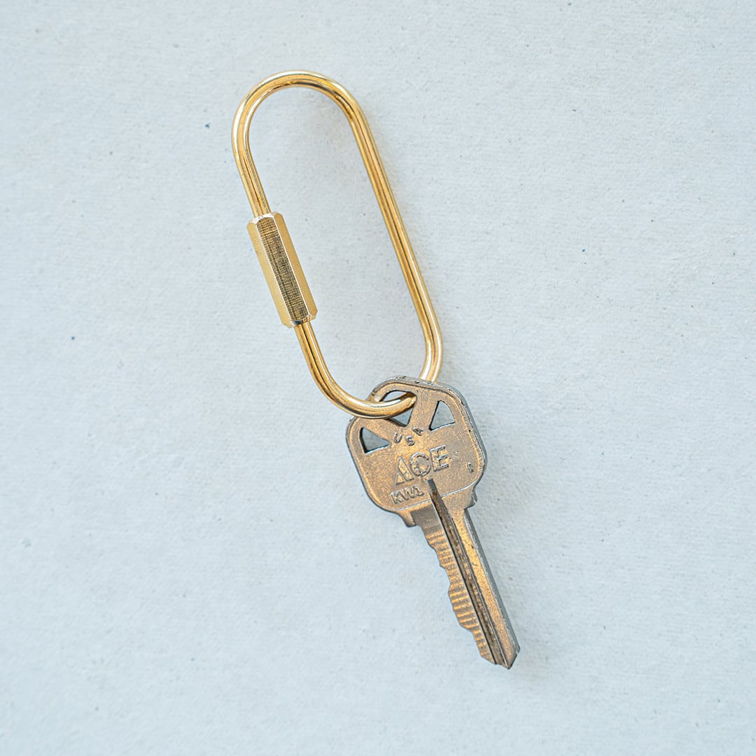 洗練された真鍮の輝きをまとったカラビナロック。