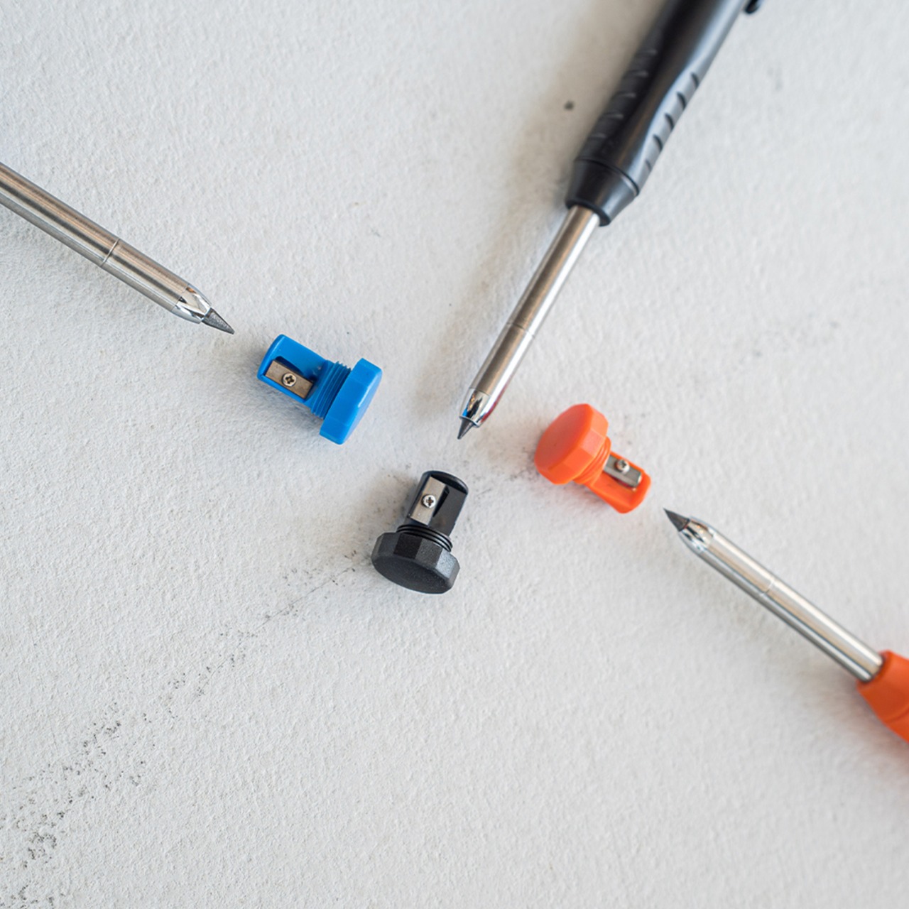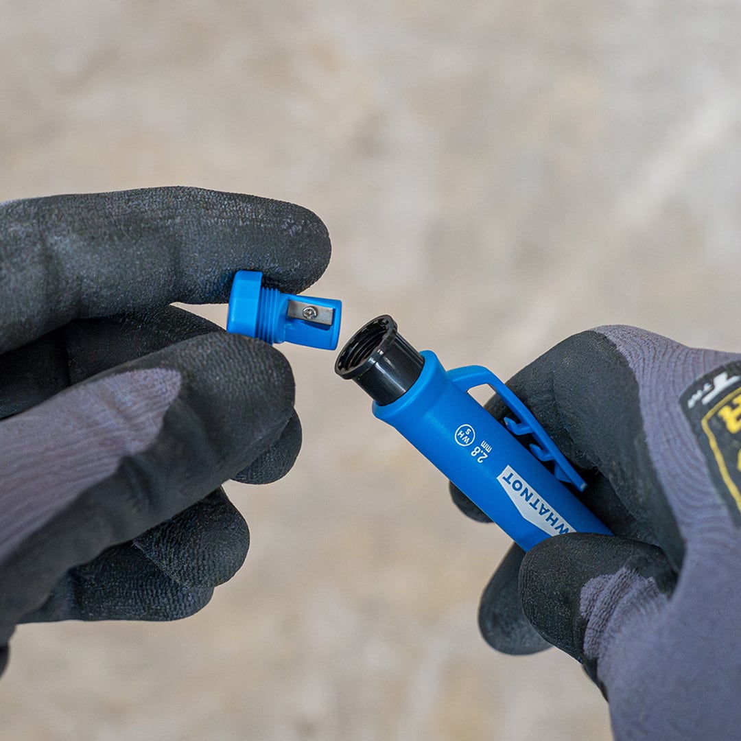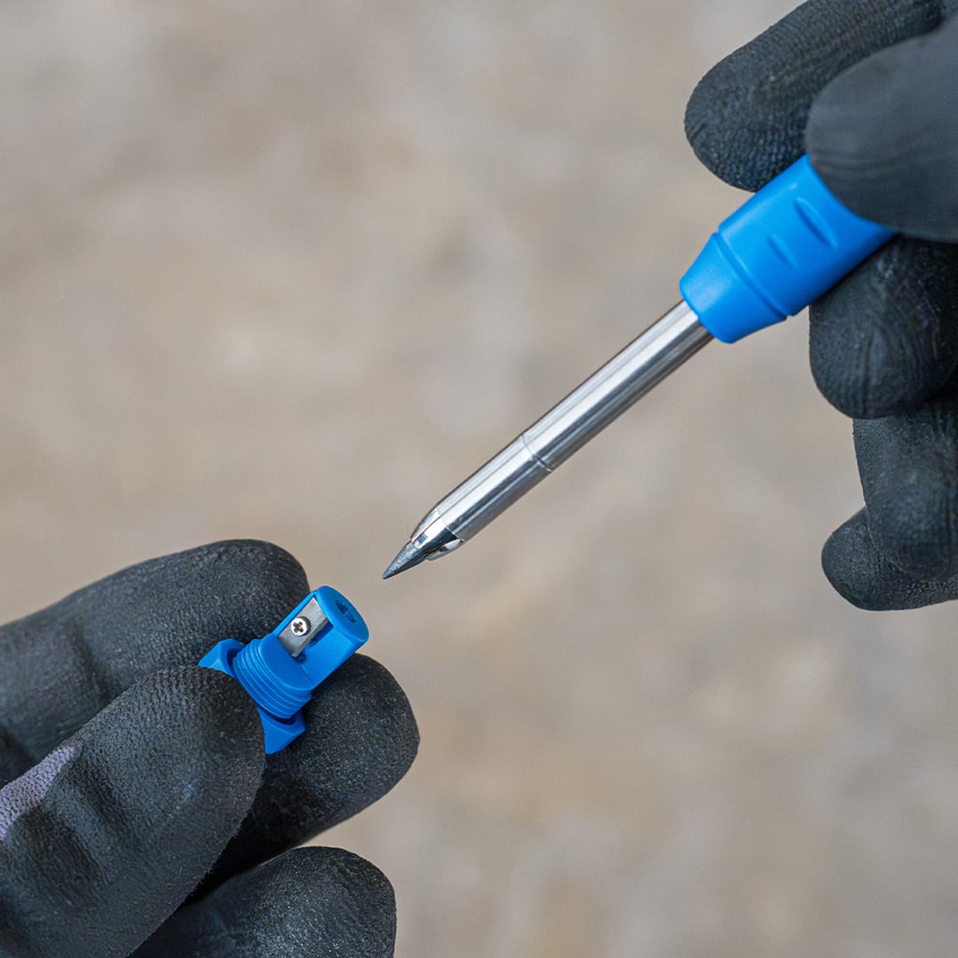 2.8mmの太芯を採用することで、木材や合板、コンクリート面などラフな下地でも折れにくく、太くはっきりとした線が引けるため、現場でのマーキングに最適です。
