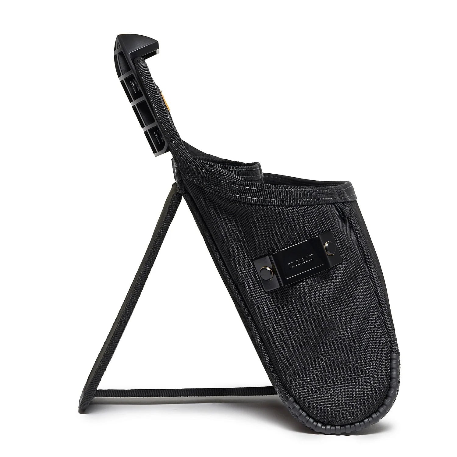 さらに、背面のキックスタンドを立てれば床やテーブルに自立させて使用できるほか、間口の広い「隠し縫い仕様」の大容量ポケットにより、工具の出し入れが非常にスムーズです。