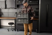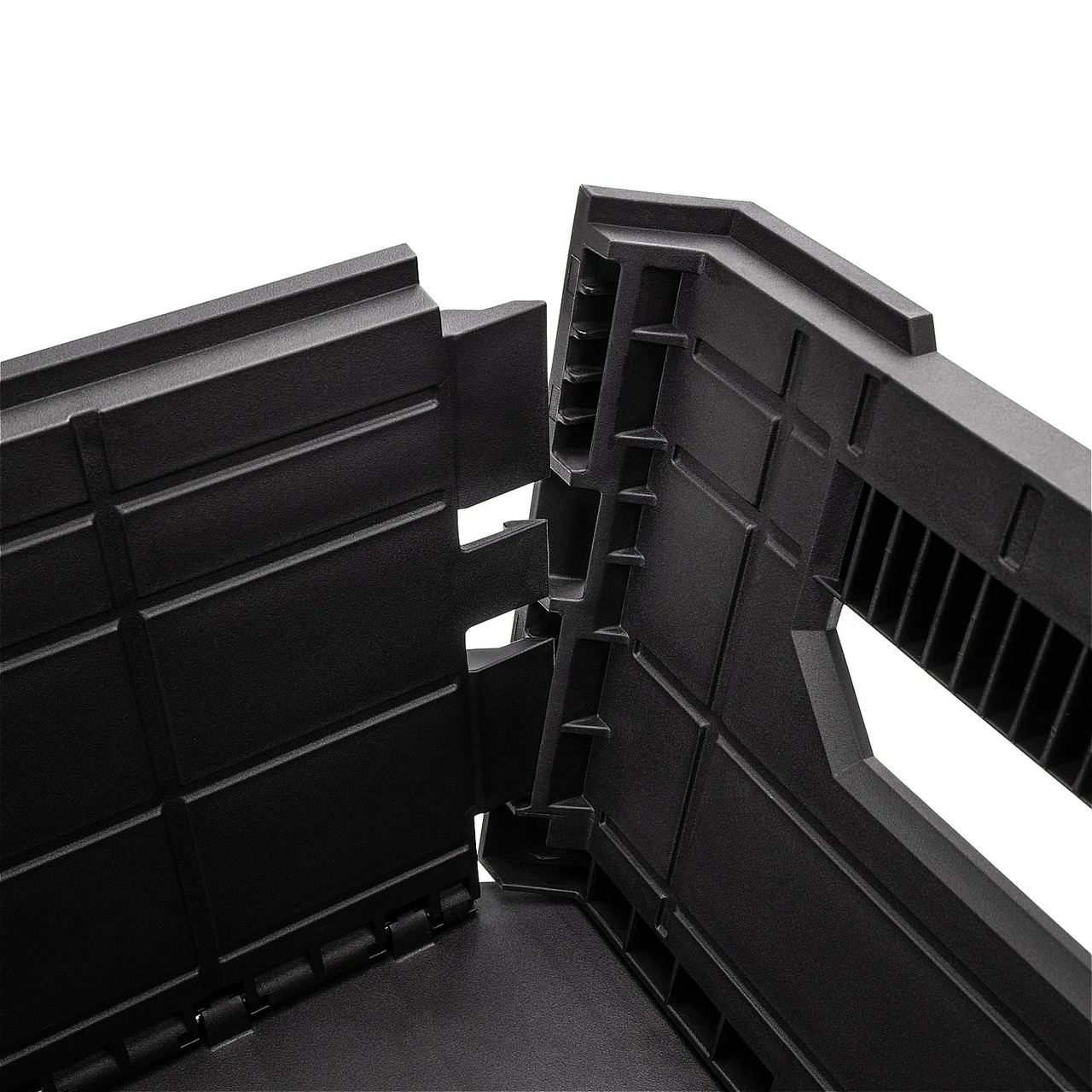 現場やガレージ、趣味の道具整理に便利な収納ボックスで、最大の特徴はスタッキング(積み重ね)が可能な点と、折り畳みできること。約23kg(50ポンド)の重さに耐えられる強度設計になっており、使用しない時は非常にコンパクトに折りたたんで収納できます。