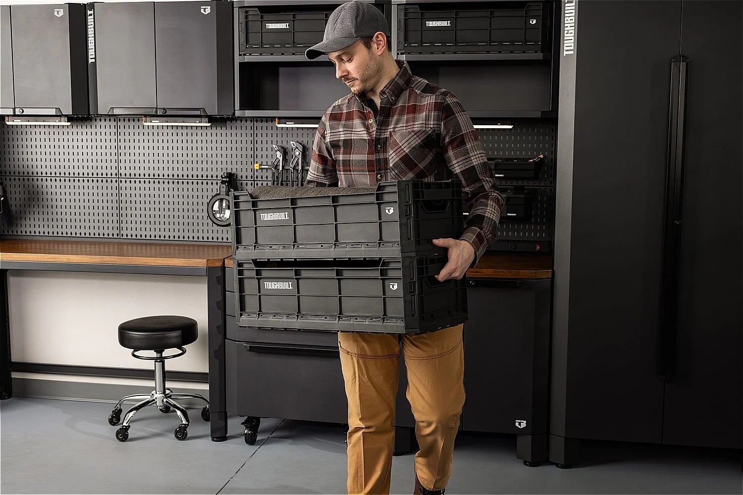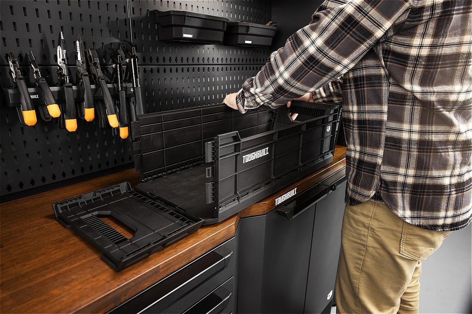「TOUGHBUILT(タフビルト)」の折りたたみ式コンテナ。