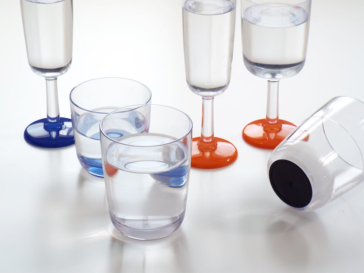底面のゴム(エラストマー)はノンスリップとテーブルを保護する役割があり、倒れにくく割れないのでお子様の使用からアウトドアまで幅広くご使用いただけます。
