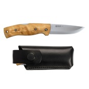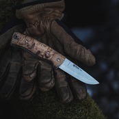 ブレードにはヘレ独自の最高級素材であるトリプルラミネートステンレススチールを採用。熟練の職人によって鋭利なスカンジナビアンエッジに研ぎ上げられており、先端がわずかにドロップした形状は幅広い作業に適しています。堅牢なロックバックシステムにより、使用時にはブレードがしっかりと固定されるため、ハードな用途でも安心感があります。