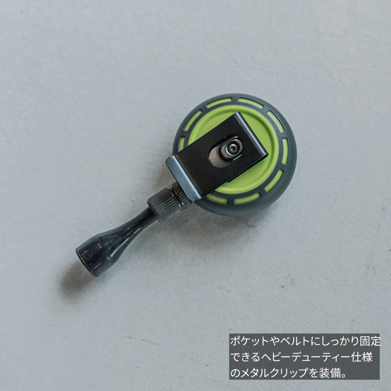 ポケットやベルトにしっかり固定できるヘビーデューティー仕様のメタルクリップを装備。