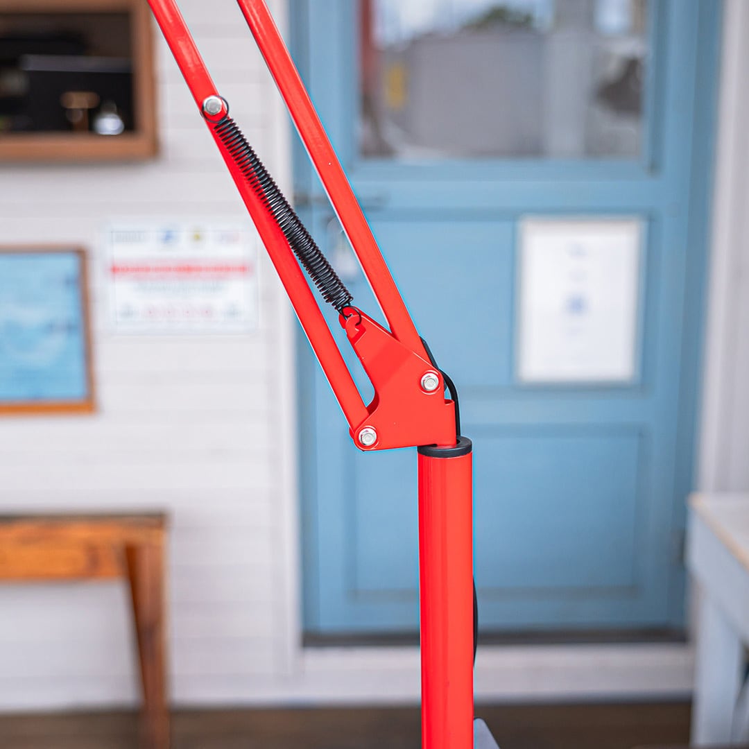 スタンド部分には堅牢なスチールを採用し、無骨な道具感も兼ね備えています。