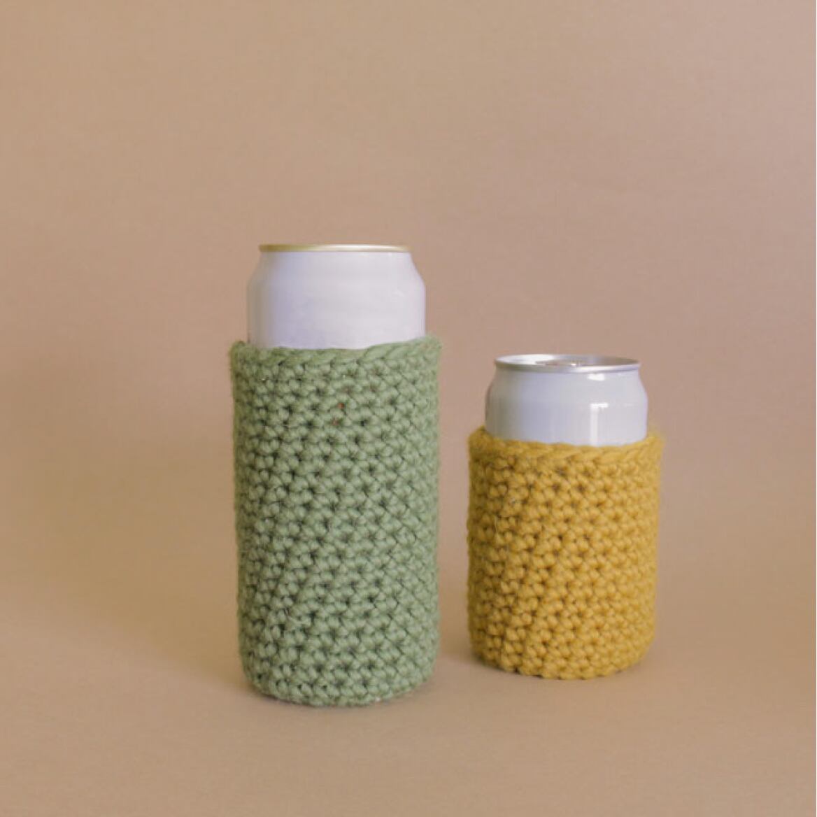 キンキンに冷やした缶飲料の保冷に役立つニットで作る缶クージー。
