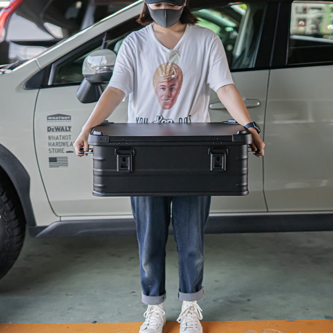 その無骨な見た目とは裏腹にアルミコンテナならではの軽さも魅力!