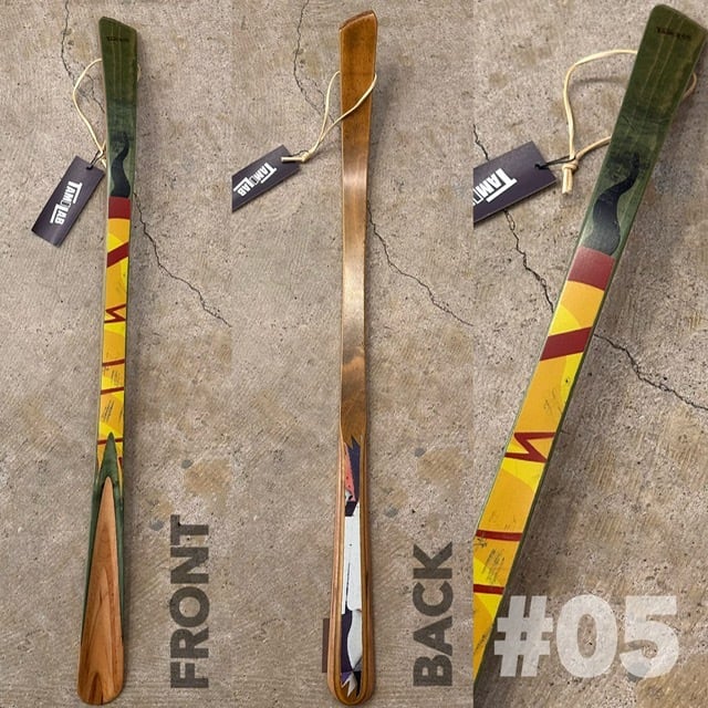 使い終わったスケートボードの板から作られている今までにない新しい靴べらです。