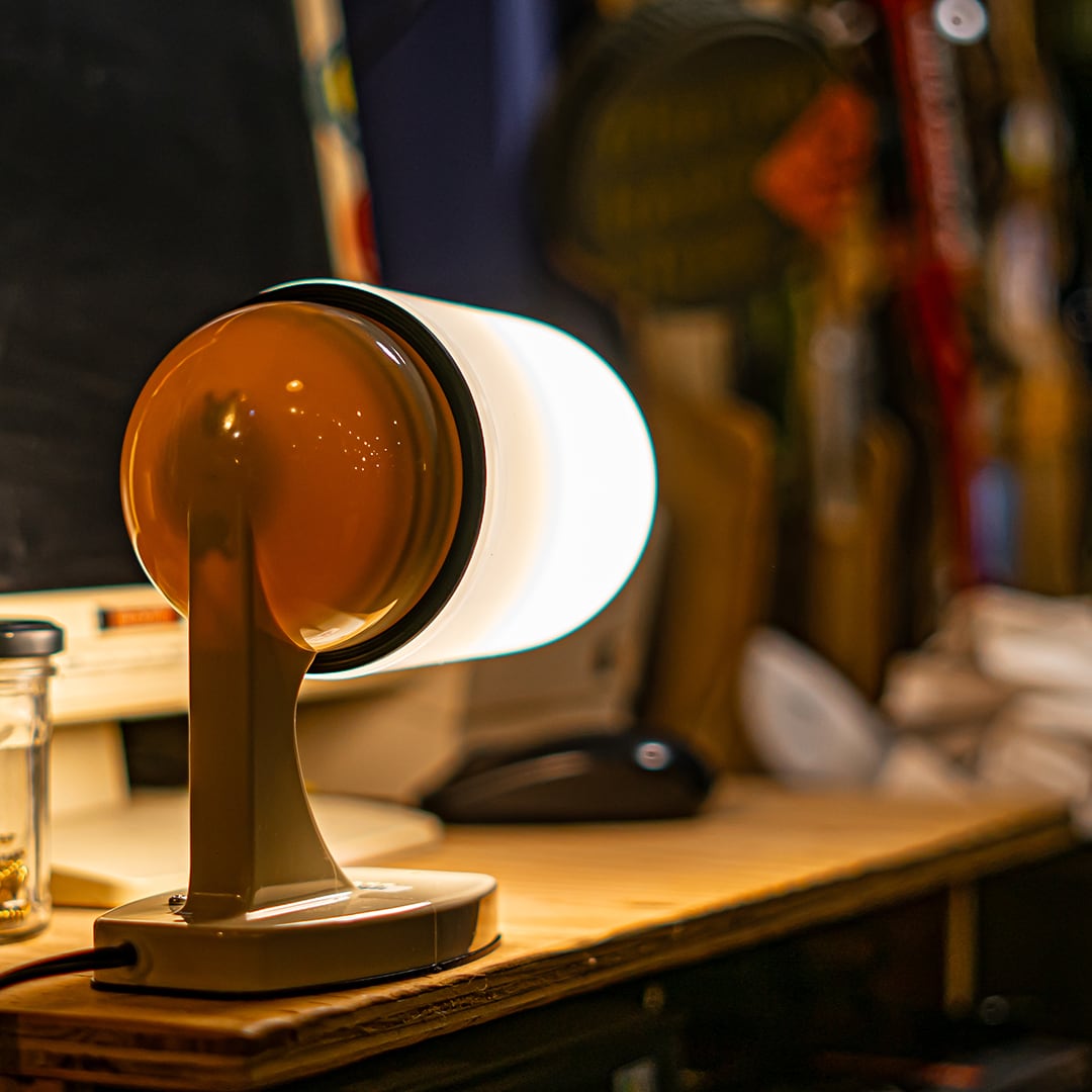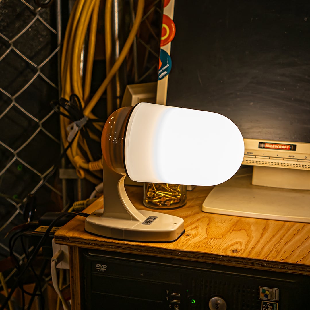 昔から日本の工事現場などで使われる照明を、デスクライトとしても使えるように改良され制作されました。
