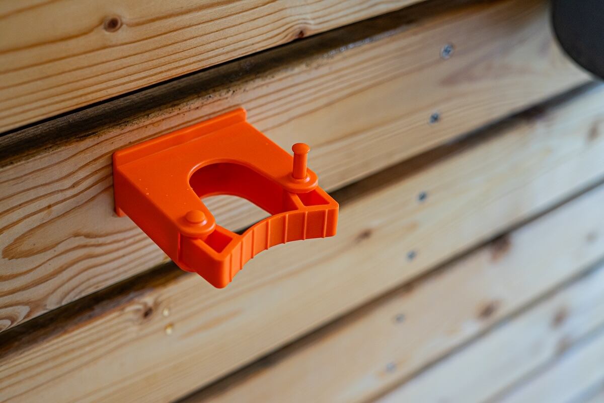 ヒルブラシのサーモンブラシハンガーは清掃道具のブラシの衛生的に保つためのハンガーシステム。