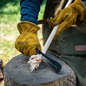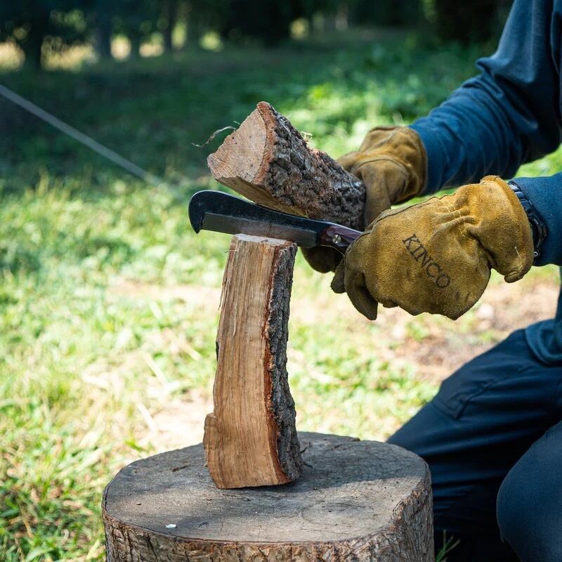 力のない人でも薪を割りやすく、テクニックが無くても削りやすい。先端が尖っていないので初心者でも安心して使える。